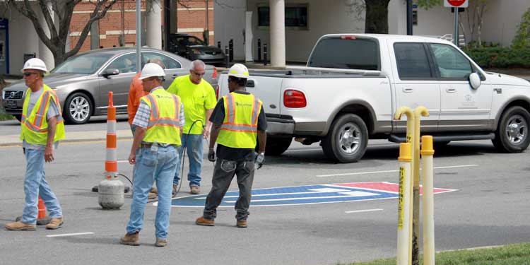 Blythe Construction is out on Catawba Avenue painting direction signs on the pavement as the DDI gets closer and closer to completion.