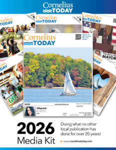 Cornelius Today is a great platform to help get the word out about your business or event. Our print edition distributes to 34,000+ readers and local businesses; our website attracts 40,000 unique visitors per month and our daily newsletter is emailed to nearly 9,000 individuals. Click the 2026 Media Kit for more information and email us here or call (704) 953-3381 for more information.