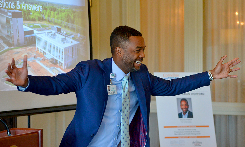 Brian M. Wofford, inaugural CEO/facility executive of Atrium Health Lake Norman Hospital, told the Newsmakers Breakfast crowd at The Peninsula Club that patients are already being scheduled for the July 1 opening.