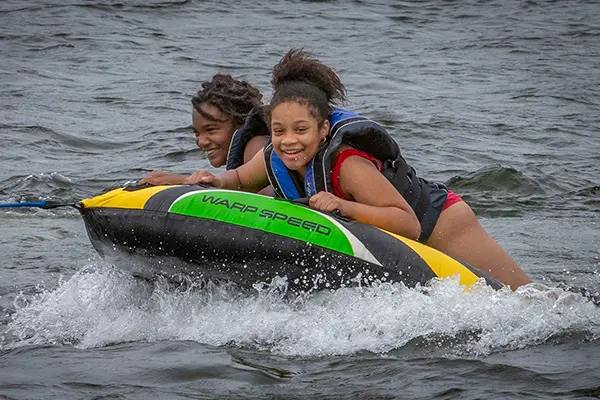 The morning boating and tubing portion of Big Day at the Lake is made possible by dozens of boat hosts who open their homes, marinas or clubs to Big Brothers Big Sisters children, accompanied by their built-in chaperones —their Big Sisters or Big Brothers.