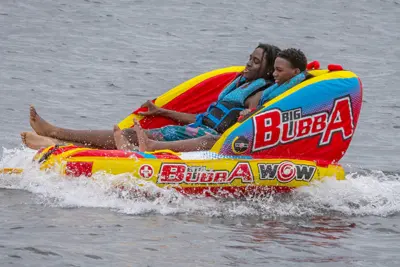 The morning boating and tubing portion of Big Day at the Lake is made possible by dozens of boat hosts who open their homes, marinas or clubs to Big Brothers Big Sisters children, accompanied by their built-in chaperones —their Big Sisters or Big Brothers.