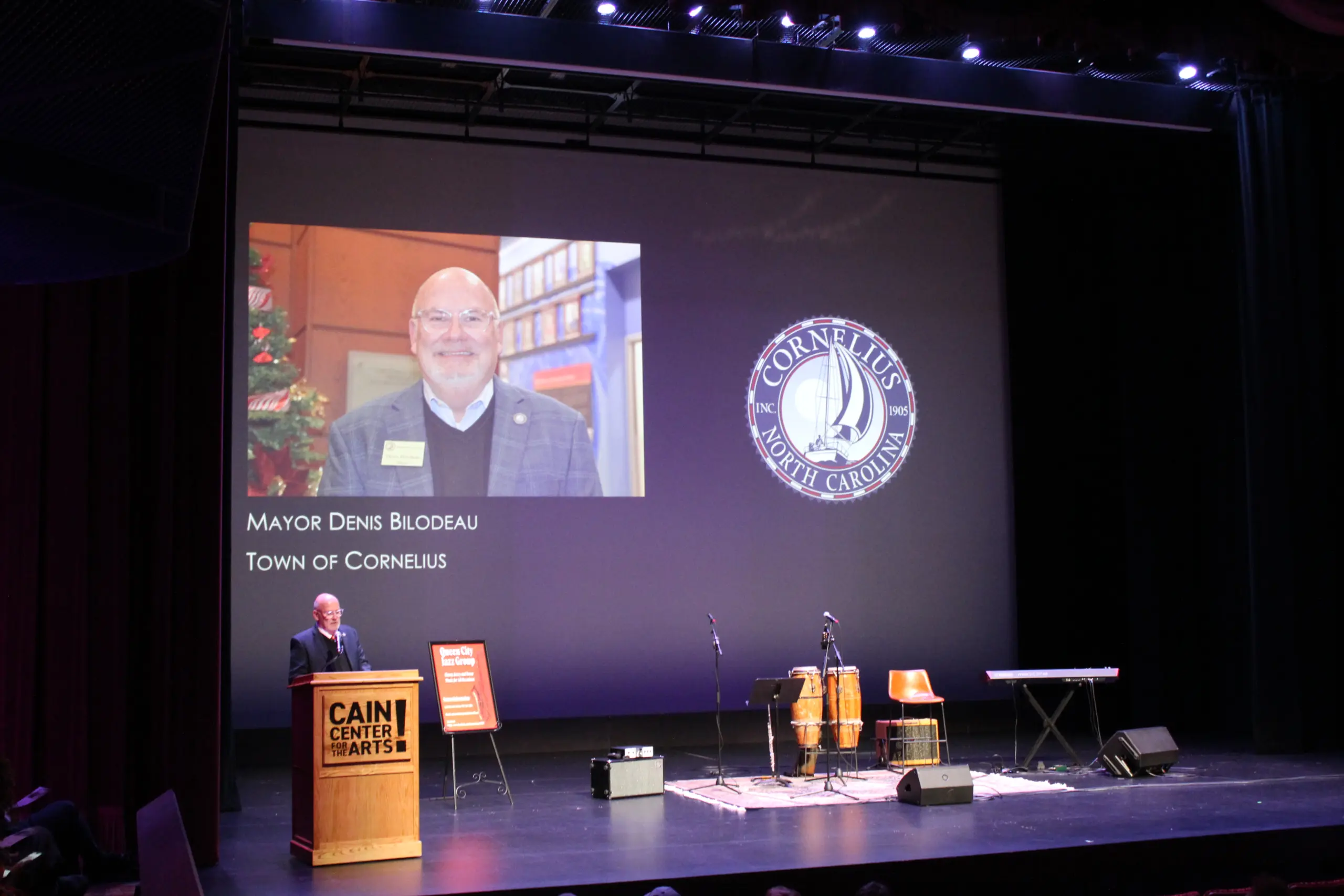 The festivities at the Cain Center for the Arts included a welcome from journalist Tonya Rivens, a Cornelius native, and comments from the Rev. Dr. Aaron Moore of Bethel Presbyterian Church, the Rev. Dr. Jonathan Marlowe of Mt. Zion UMC, and Cornelius Mayor Denis Bilodeau.