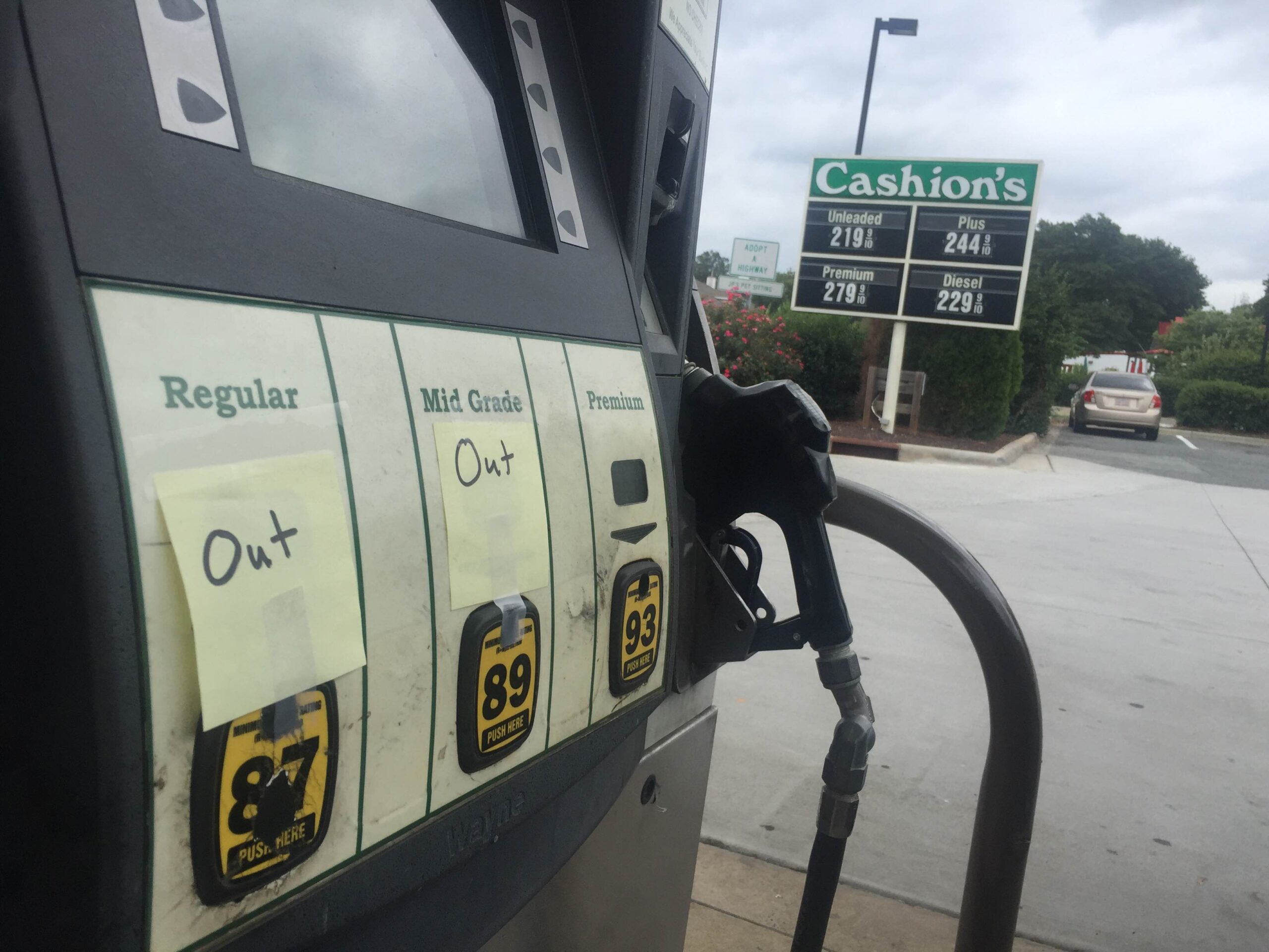 At the Exxon on West Catawba just west of Magnolia Estates, regular gas was $2.19—but there wasn’t any to be had at 1 pm. There was only premium fuel available at the downtown Cornelius Cashion’s, at $2.79 a gallon. The situation, of course, can change with deliveries of fuel at any one of these stations.