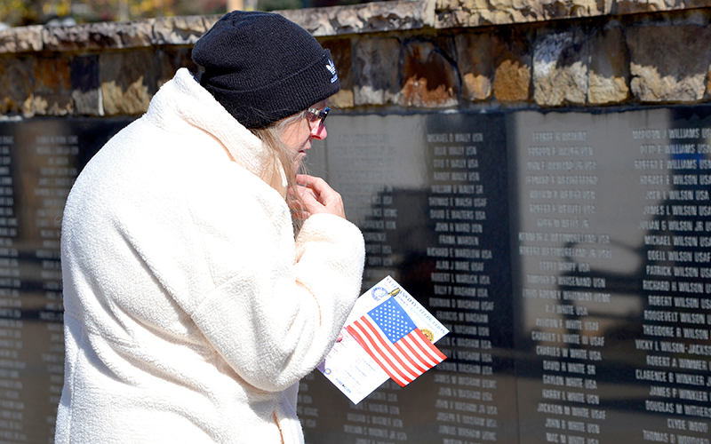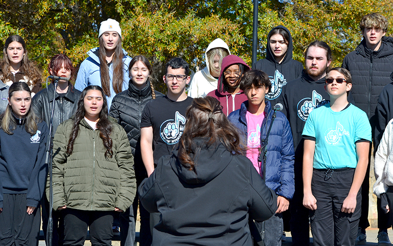 Randy Wally from American Legion Post 86 served as master of ceremonies at Rotary Plaza. The event featured performances by the Hough High School choir and U.S. Army veteran Rockie Lynne. Among the songs Lynne’s trio performed was a special tribute to Vietnam veterans, who surrounded the stage while the band played “We want to thank you.”