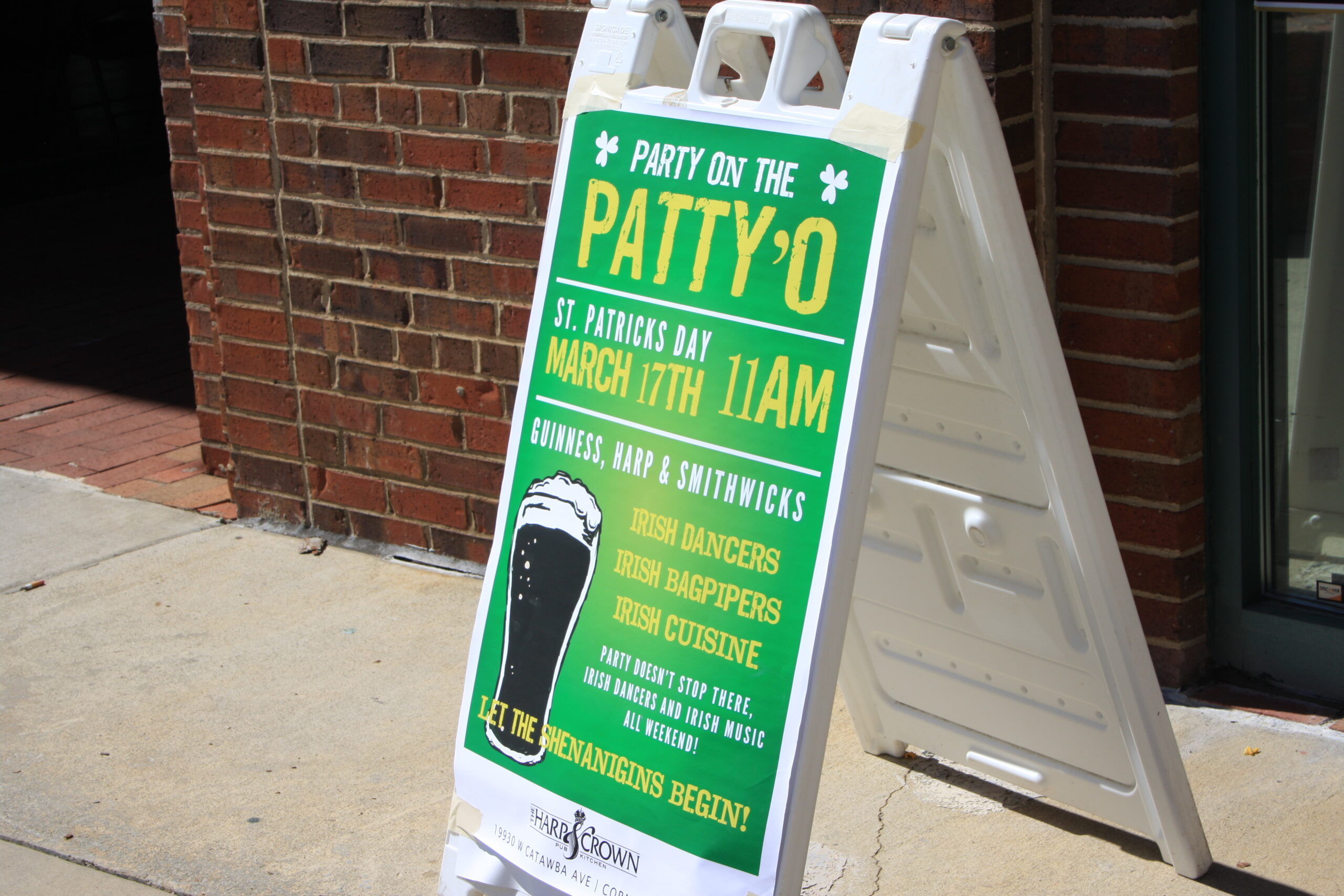 Sign out side Harp & Crown advertises their St. Patricks Day events