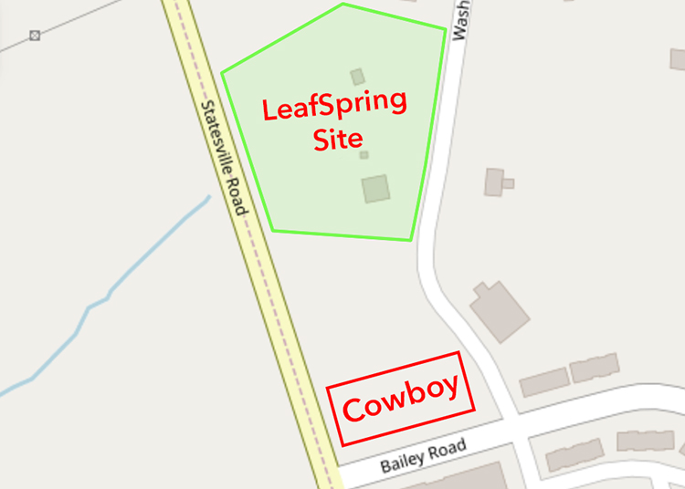 The 4.1 acre property is just north of Cowboy Restaurant on Statesville Road/Highway 21 in Cornelius. The proposed development would have access on both Statesville Road and Washam Potts.
