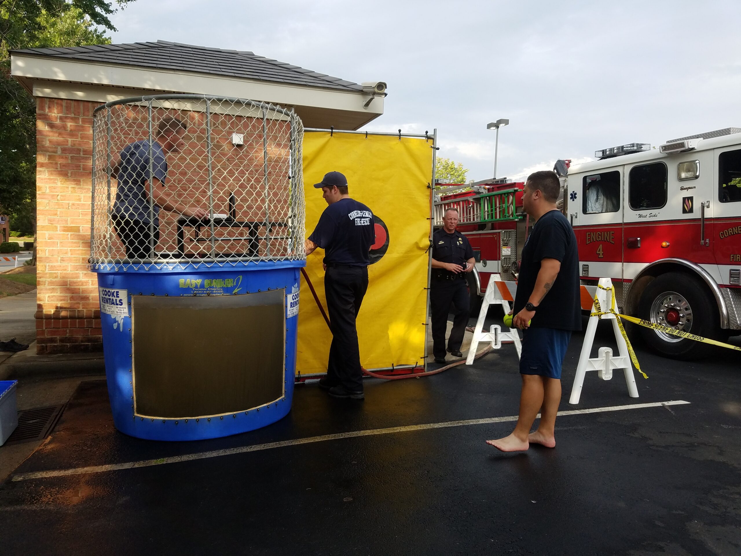 - Firefighters filling the dunk tank