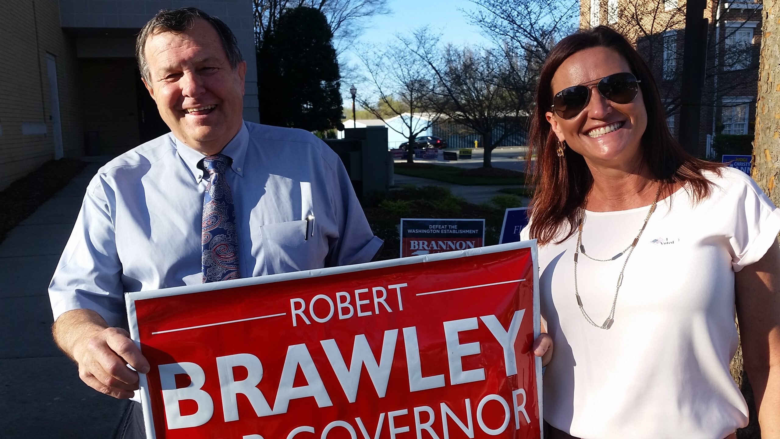 GOP gubernatorial candidate Robert Brawley with Cornelius resident Amanda Dudley