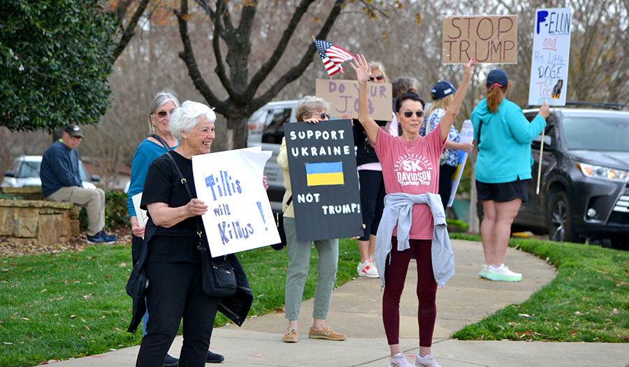 March 20. Approximately 30 protestors gathered at the intersection of West Catawba and Jetton between 11:30 am to 1:30 pm attempting to get the attention of US Sen. Thom Tillis as he attended a fundraising lunch.