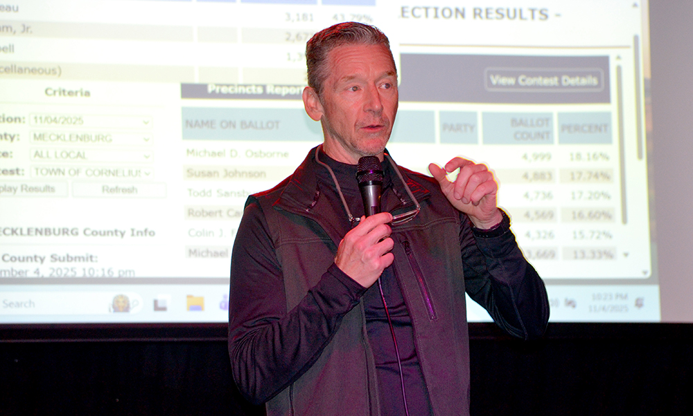 Cornelius commissioners Michael Osborne, Susan Johnson, Todd Sansbury and Robert Carney were re-elected and Planning Board member Colin Furcht also won a seat on the Town Board.