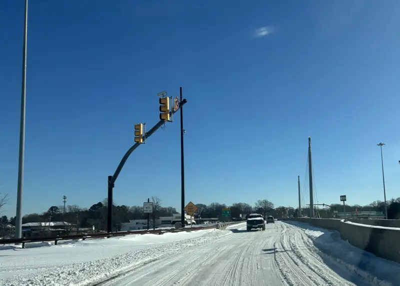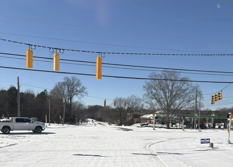 1:28 p.m. – Avoid Jetton Road extension from Publix to the stop sign at One Norman Boulevard—regardless of two- or four-wheel drive. The shade from the trees and buildings has kept the snow/ice from melting and large patches have refrozen in multiple areas. Public works is aware of the situation and has added it to its to-do list.