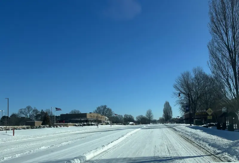 8:48 a.m. – Public works will continue clearing roads today and look to get a big assist from the sunny skies and high of 40 degrees.
