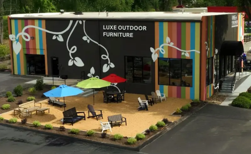Vine by Viridien opened in May 2025 on Statesville Road in the former used-luxury auto business, backing up to northbound I-77. The Cornelius store is a curated concept location where customers can mix and match collections to make their outdoor spaces uniquely their own, according to owner Grant Henegan.
