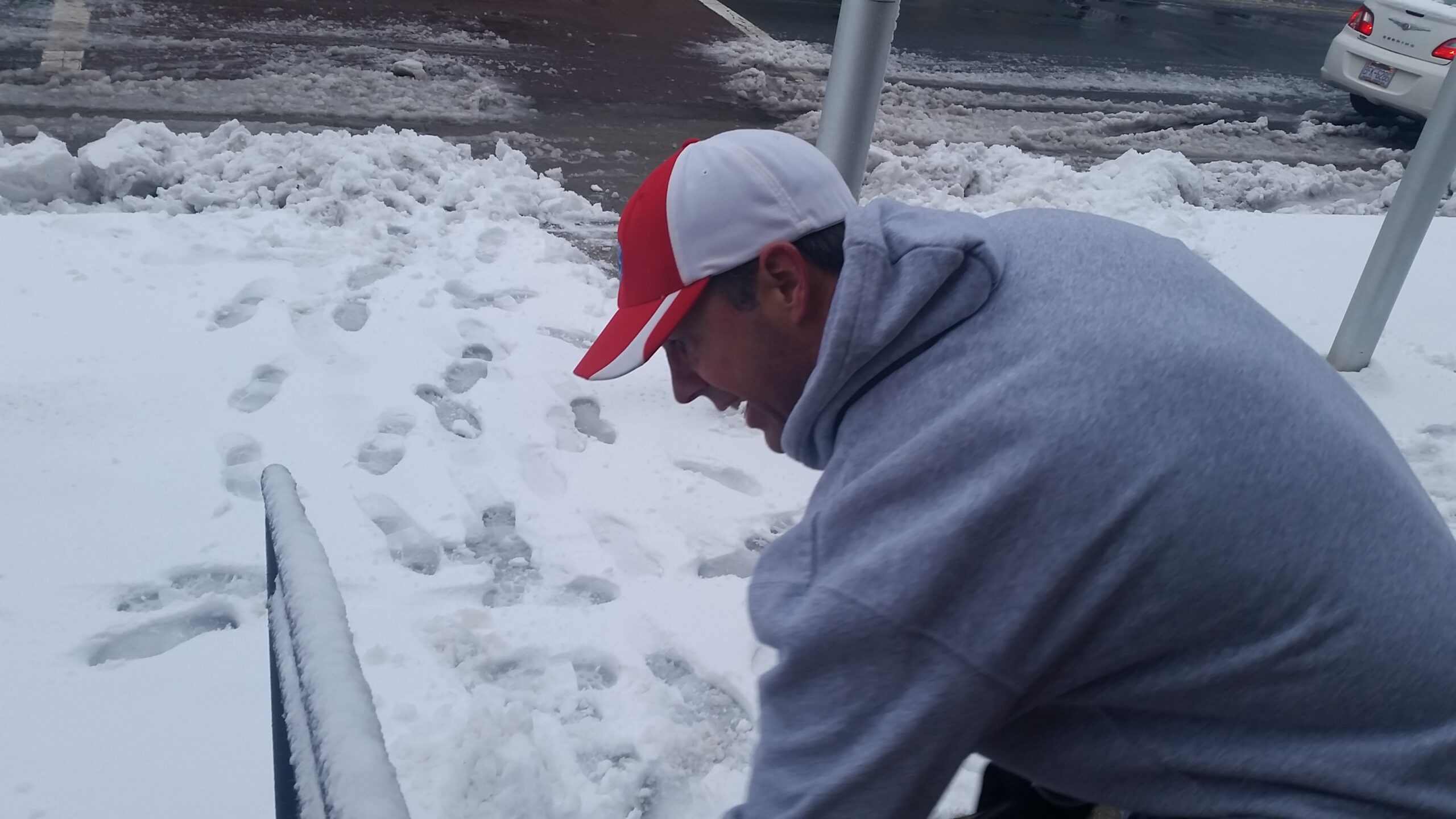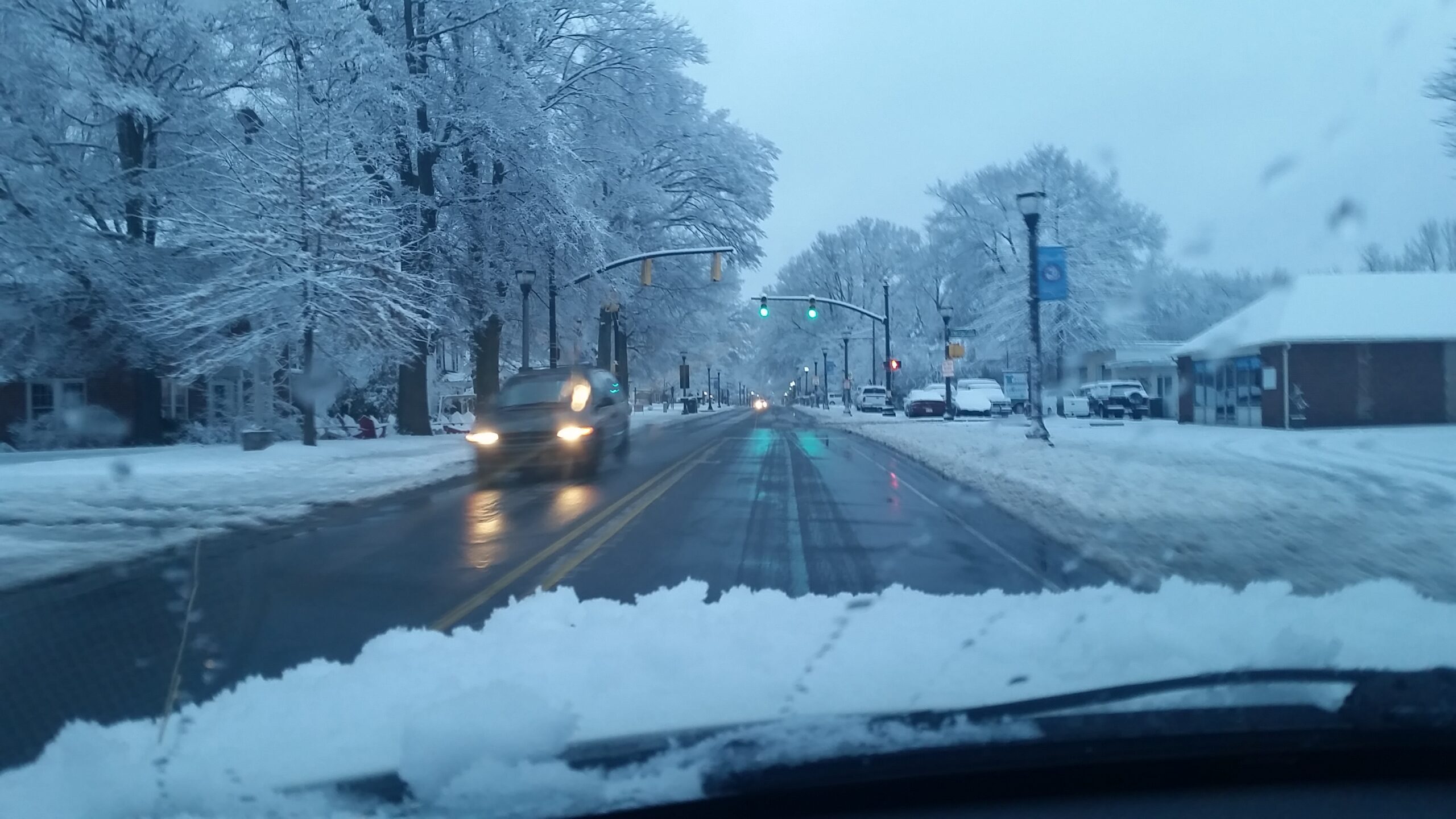 Proud Mom Lori Owens sent this picture of son Tyler, 13, with his tropical snow man in Blue Stone Harbor. Roads are nice ‘n’ clear, but plan for lows around 27 tonight. Click Headline for our Snow Gallery.