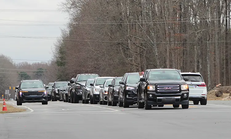 Cars backed up northbound at Highway 21 and Westmoreland Road