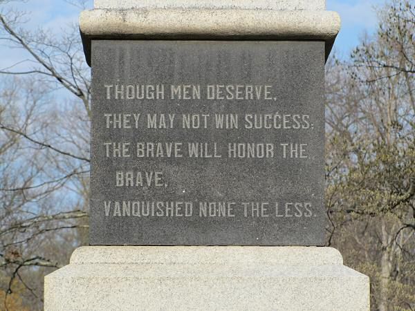 According to the website, the “column is mounted on a dark, polished square granite block that is inscribed on the front face. This structure rests atop a capped granite plinth which has a bas-relief image of a cannon on the front face, bas-relief inscriptions on the sides, and the bas-relief image of crossed swords on the rear face. The entire monument structure sits on three-step base of rough cut stone.”